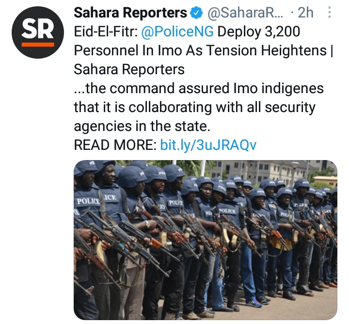 The Imo State Police Command on Tuesday said it had deployed a total of 3200 personnel to ensure adequate security in the state as Muslim faithful mark the Eid-El-Fitr celebration.